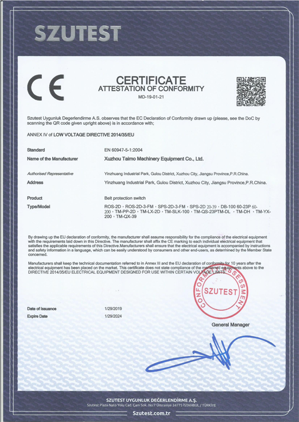 • 大連國際技術機械貿易公司定購了176臺SPS-2D拉繩開關